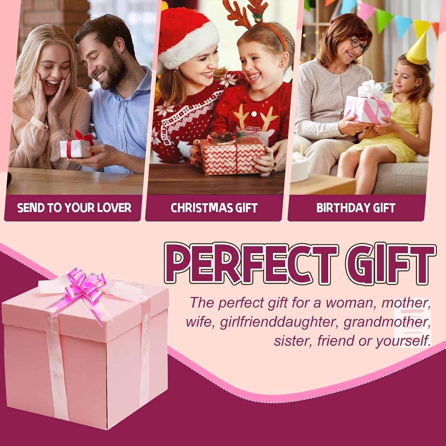 - Spacious and Sturdy Design:ย This chocolate explosion box gift features five layers of foldable compartments, providing ample space for storing photos, small gifts, and messages. It is ideal for those looking for cute gifts for their boyfriend or girlfriend that are both memorable and interactive.