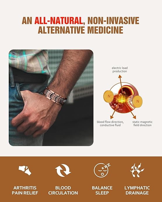 Our magnetic bracelet for men is crafted with premium 99.99% pure copper,And Choose this unique colors that embody individual charm.